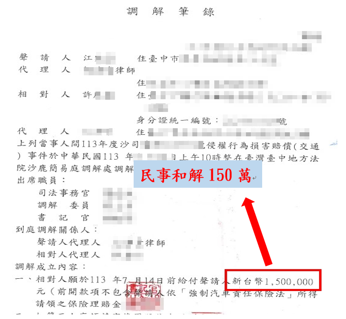 透過團隊協助重新開立診斷書,與保險公司溝通後在法院和解取得應有權益。