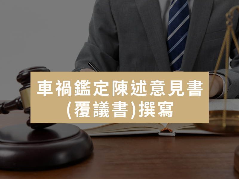 適用欲向【車輛行車事故鑑定委員會】(俗稱:車鑑會)提出對己方有力的觀點,試圖推翻警方初判表,爭取有利的責任比例,請專家協助整理一份陳述意見書。